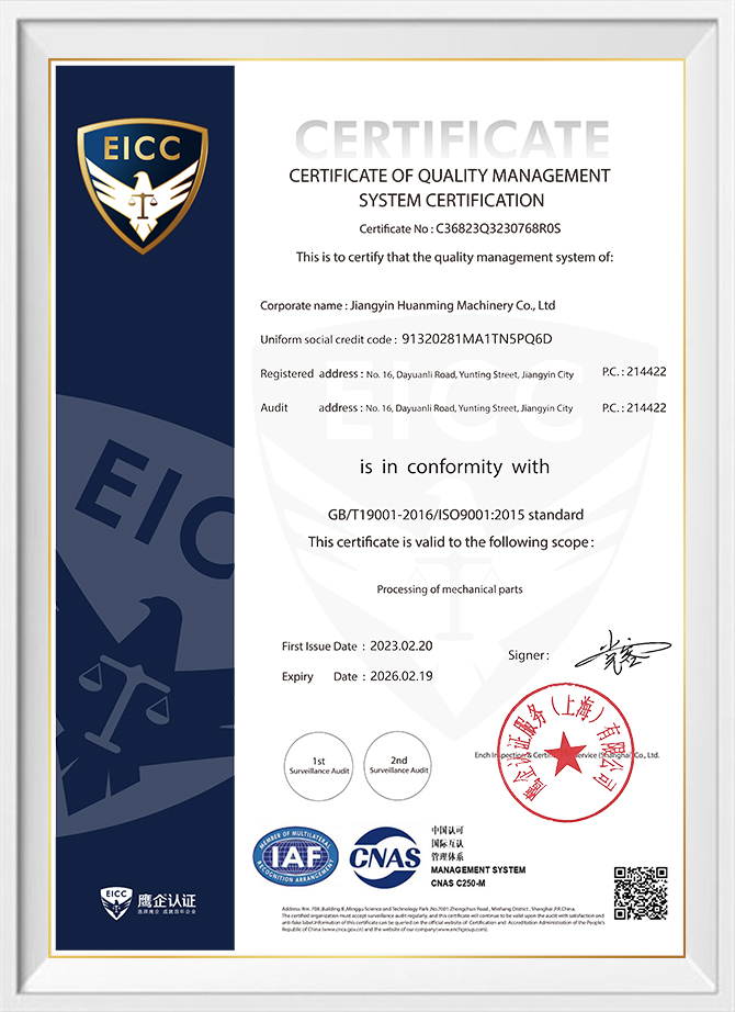 Jiangyin Huanming Machinery Co., Ltd. ইয়াংজি নদীর দক্ষিণে অবস্থিত একটি সুন্দর এবং সমৃদ্ধ জলের শহর জিয়াংইন সিটির ভৌগোলিক অবস্থান, সতেজ এবং মার্জিত পরিবেশ এবং সুবিধাজনক পরিবহন ব্যবস্থা রয়েছে।